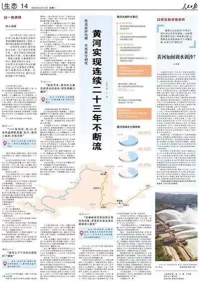 《人民日報》整版報道|推進泥沙治理 開展科學調度 黃河實現連續二十三年不斷流